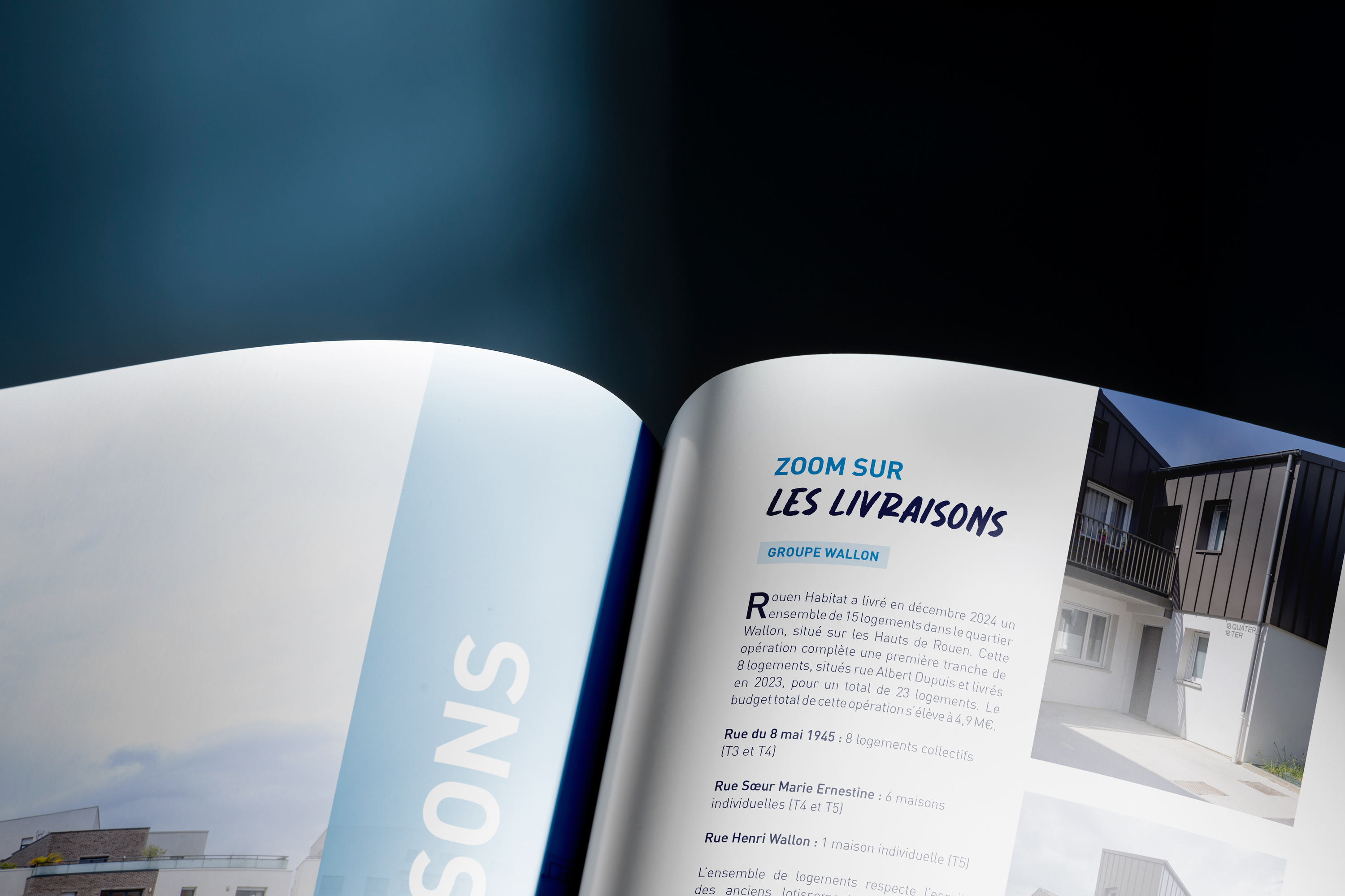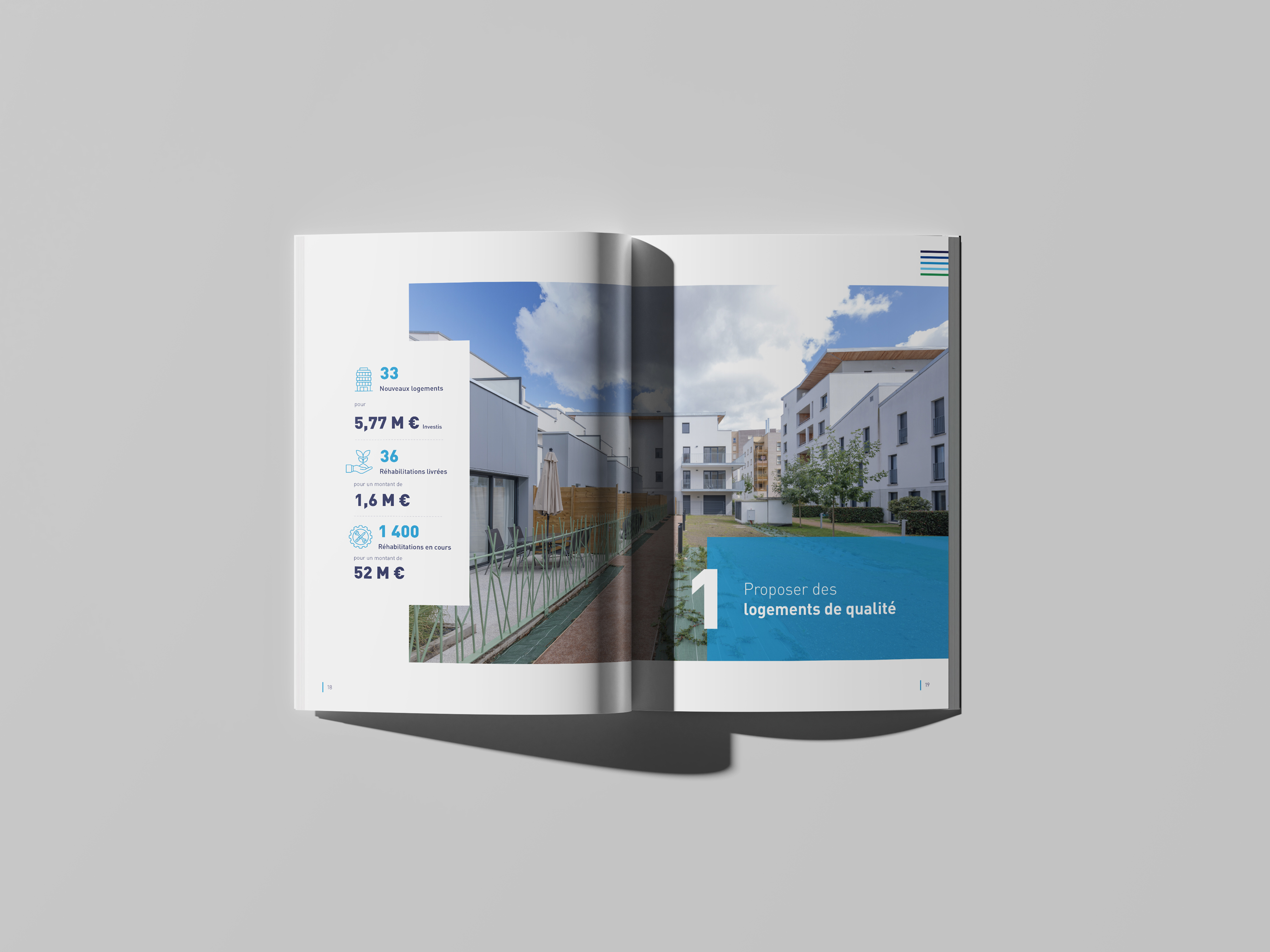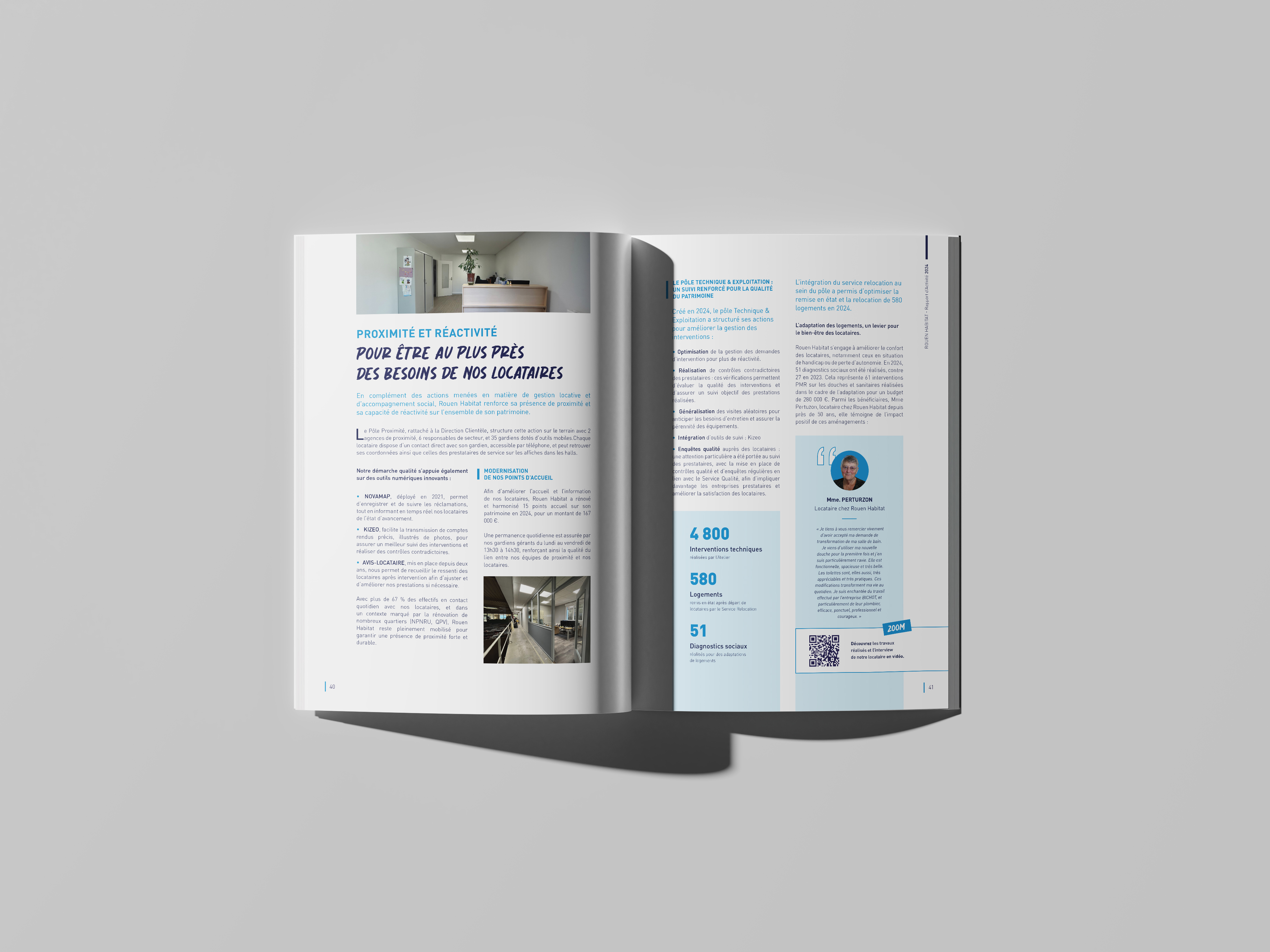 Concevoir une mise en page claire, accessible et crédible pour le rapport d’activité de Rouen Habitat. Objectif : rendre lisibles les chiffres clés, valoriser les réalisations et l’impact social, tout en respectant la charte et un ton institutionnel sobre.